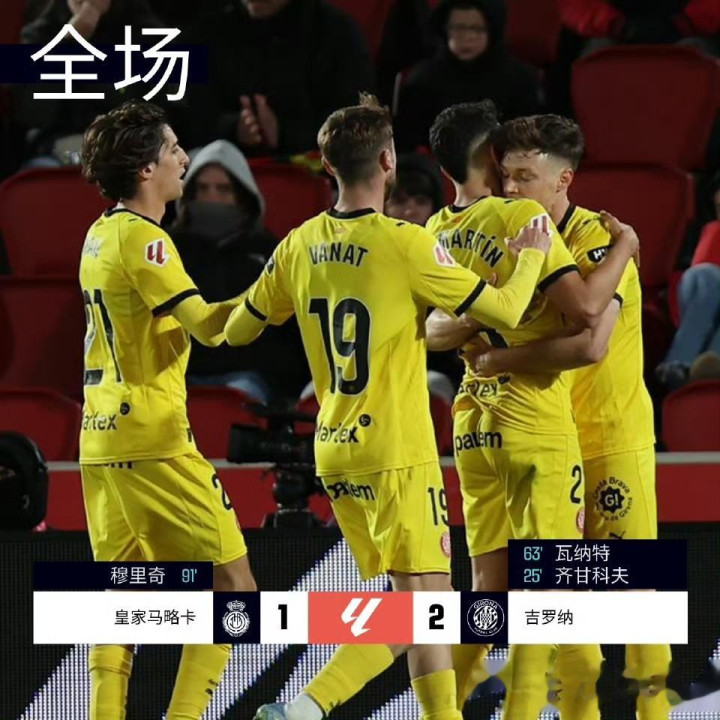 全场比赛来看赫罗纳发达相对较好,比赛刚初始勒马尔就来了一脚远射,最终被门将出,第25分钟皆甘科夫禁区右路将球打进匡助球队取得高出,下半场浅野拓磨单刀破门但VAR介入判定越位在先进球无效,第55分钟维特塞尔头球攻门击中横梁弹出错失良机,随后瓦纳特禁区单刀造点并躬行主罚射中扩大高出上风,伤停补时阶段穆里奇禁区内颠仆通常得回一粒点球,他我方将球罚进扳回一城,最终马略卡主场1-2不敌赫罗纳,赛后两队同积18分,位列15、16名。